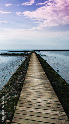 © consultdm15, Fototapeta premium Küstenbefestigung an der Nordsee Weg im Wattenmeer