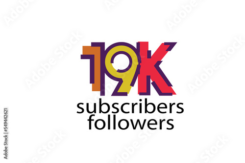 Fototapeta premium 19K, 19.000 subscribers or followers blocks style with 3 colors on white background for social media and internet-vector