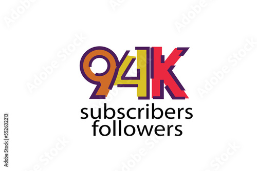 Obraz premium 94K, 94.000 subscribers or followers blocks style with 3 colors on white background for social media and internet-vector