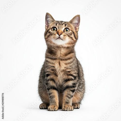 © Cedric, Obraz premium Kätzchen sitzt neugierig auf hellem Hintergrund und schaut zur Kamera