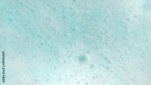 Obraz premium 石鹸や洗剤などの一面が細かな泡と大小様々な泡の画像素材 背景・テクスチャー 16:9・8K UHDサイズ(7680 x 4320)水色・ライトブルー・シアン・青緑・ブルーグリーン・ミント・パステル