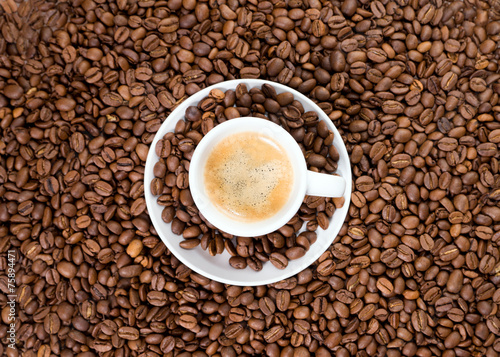 Fototapeta premium Kaffeebohnen mit einer Espresso Tasse