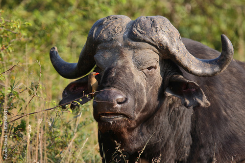 © Ludwig, Naklejka premium Kaffernbüffel und Rotschnabel-Madenhacker / African buffalo and Red-billed oxpecker / Syncerus caffer et Buphagus erythrorhynchusuphagus erythrorhynchus