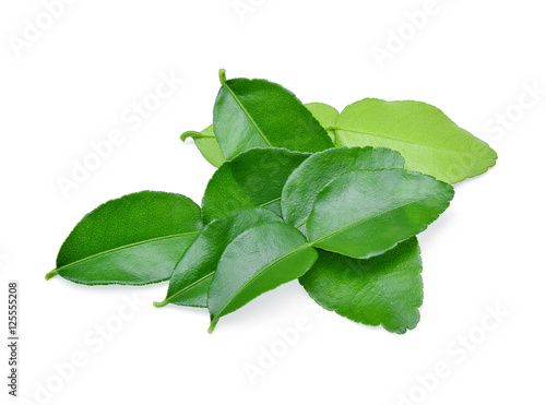 © akepong srichaichana, Obraz premium Kaffir lime leaf isolated on white background
