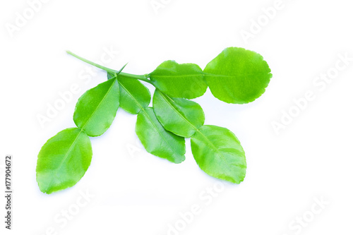 © suthisak, Obraz premium Kaffir lime leaves on white background