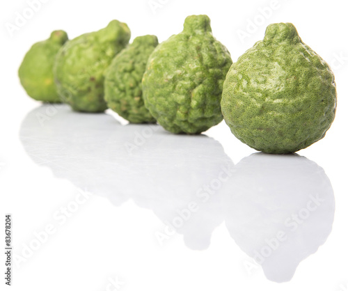 © akulamatiau, Fototapeta premium Kaffir or makrut lime over white background