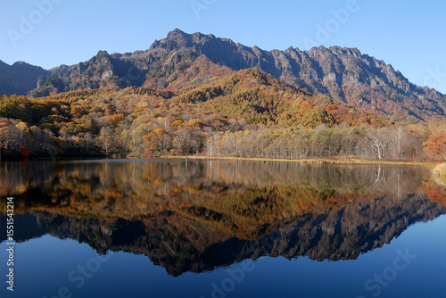 Obraz premium Kagamiike lake in autumn Togakushi,Nagano / 錦秋の戸隠高原,鏡池 @信州長野