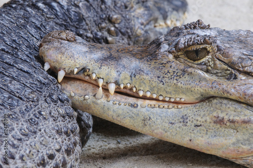 © fotofrank, Obraz premium Kaiman Aligator lächelt hinterhältig und zeigt Gebiss