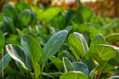 © Venis , Obraz premium Kale grown in a plot is thriving in the backyard.