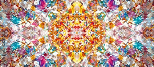 Fototapeta premium Kaleidoscopic jewel pattern; vibrant colors; symmetrical design; textile print