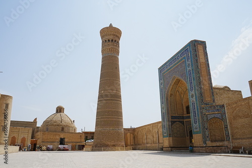 Fototapeta premium Kalon Minaret and Kalan Mosque in Bukhara, Uzbekistan - ウズベキスタン ブハラ...