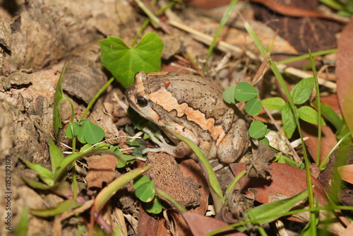Fototapeta premium Kaloula pulchra pulchra, commonly known as the Asian Painted Frog, Chubby Frog, or Banded Bullfrog, is a subspecies of Kaloula pulchra, a frog belonging to the family Microhylidae.