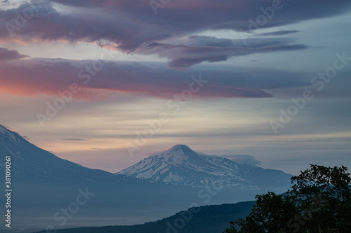 Fototapeta premium Kamchatka, Avachinsky volcano at sunrise