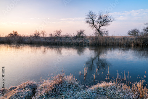 Obraz premium Kanal am Neusiedlersee am Morgen bei frostigem Wetter