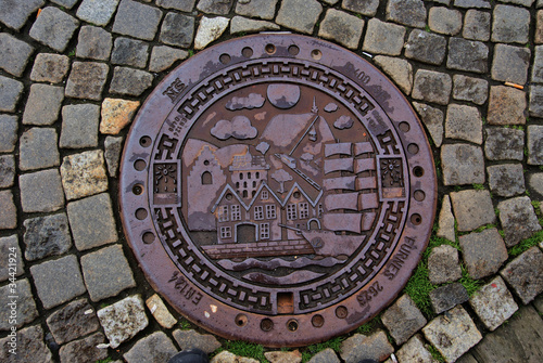 © Andreas, Obraz premium Kanaldeckel in Bergen