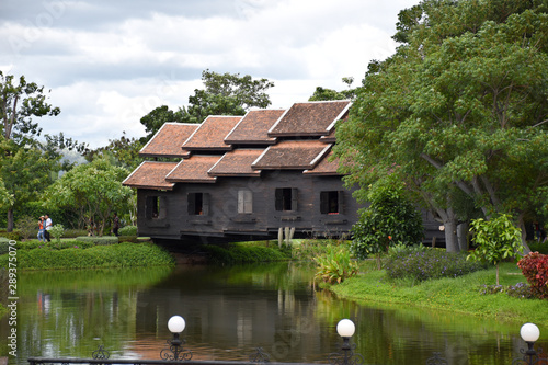 Fototapeta premium Kanchanaburi, Thailand, 09.09.2019: Beautiful garden, lake, traditional Thai,...