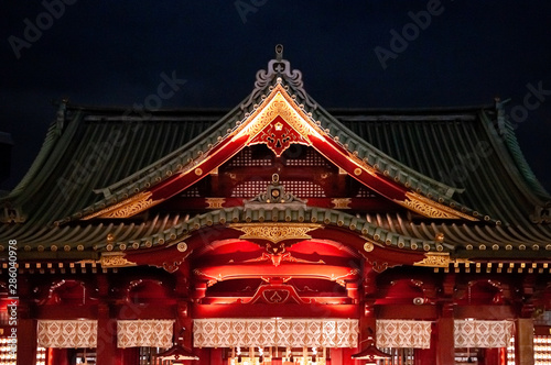 © PixHound, Naklejka premium Kanda Myojin Shrine main gate grow in the dark at night. Tokyo - Japan