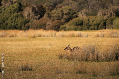 Naklejka premium kangaroo in a bush at parc national Narawntapu