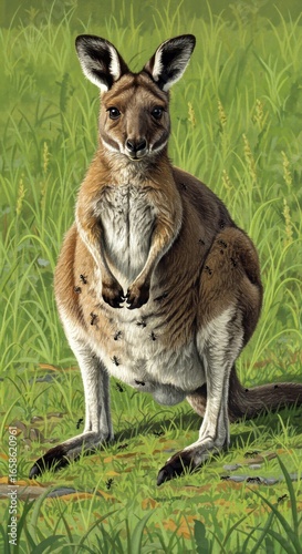 © fiki, Fototapeta premium Kangaroo in grassy field