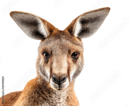 © Khmel, Fototapeta premium Kangaroo portrait showcasing facial features and expression on a transparent background, cut out