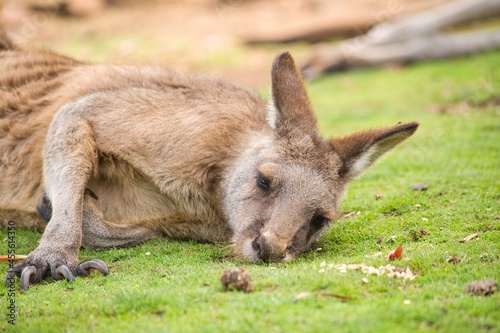 © Nature_Japan_NM, Fototapeta premium Kangaroo sleeping and resting on the ground in Tasmania, Australia