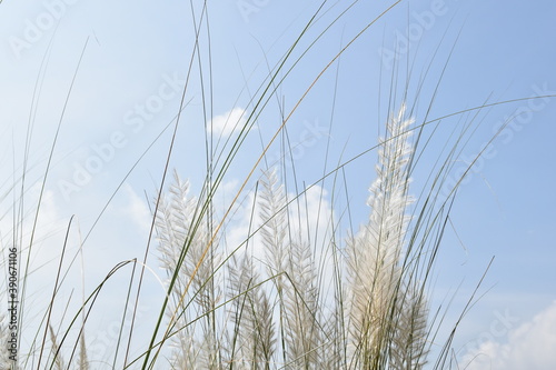 Obraz premium Kans Grass or Kash Phool or Saccharum spontaneum in Nature with selective focus