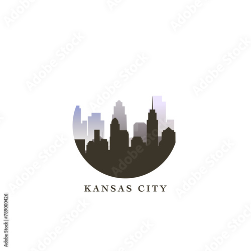© Anastasiia, Naklejka premium Kansas City cityscape, vector gradient badge, flat skyline logo, icon. USA, Missouri state city round emblem idea with landmarks and building silhouettes. Isolated abstract graphic