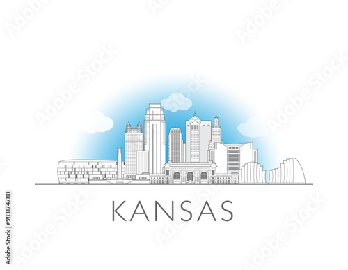 © NAK, Fototapeta premium Kansas city skyline cityscape vector illustration