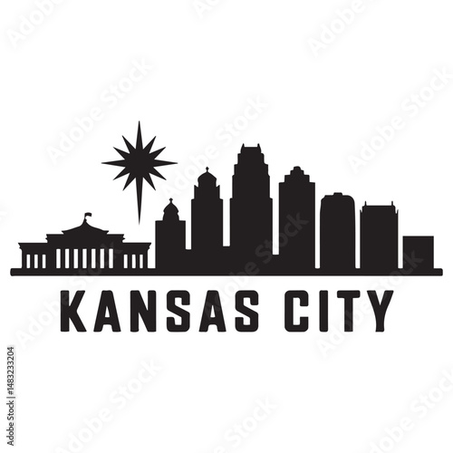 © firoz, Naklejka premium Kansas City skyline silhouette. Black Kansas City city design Vector black silhouette. with white background