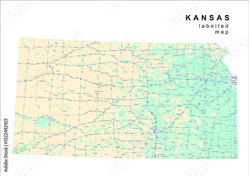 © Rumi, Fototapeta premium Kansas USA labelled map