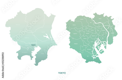 © Tuna salmon, Naklejka premium kanto map. tokyo in japan region vector map.