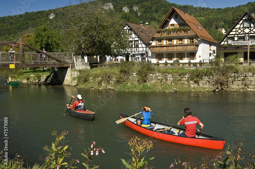 © ARochau, Fototapeta premium Kanu-Tour auf der Wiesent vor herrlicher Kulisse bei Muggendorf