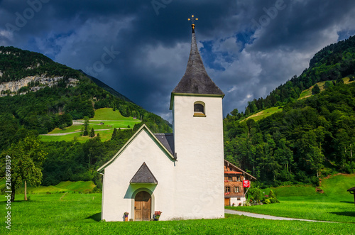 © mojolo, Fototapeta premium Kapelle in den Alpen im Engelbergertal, Nidwalden, Schweiz