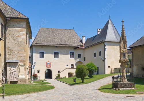 © carinthian, Fototapeta premium Kapitelhaus und Lichtsäule in Maria Saal / Kärnten / Österreich