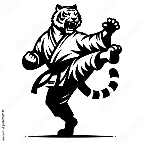 Fototapeta premium Karate tiger in Traditional Gi Performing Martial Arts Pose in Dojo Setting