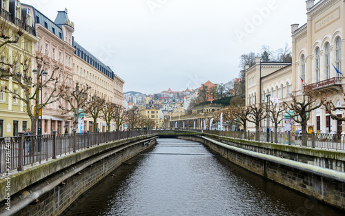 © TATIANA, Obraz premium Karlovy Vary is a spa town in the Czech Republic. On the territory of the city there are 12 healing springs, with a carbon dioxide content and a water temperature of 30 to 72 degrees Celsius.