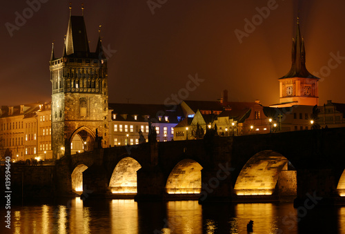 Naklejka premium Karlsbrücke Prag - Nachts beleuchtet