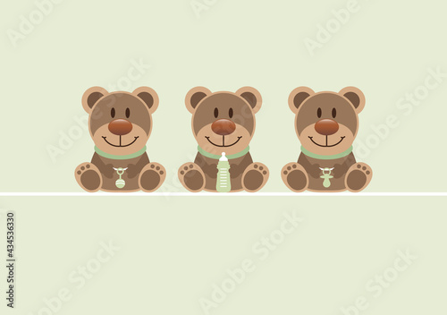 Fototapeta premium Karte 3 Teddys Babysymbole Unisex Grün
