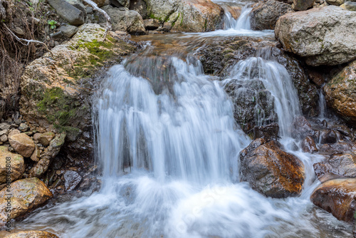 © nemo1963, Fototapeta premium Kaskaden am Bach bei Pufels, Bula, unter der Seiser Alm, Südtirol, Italien