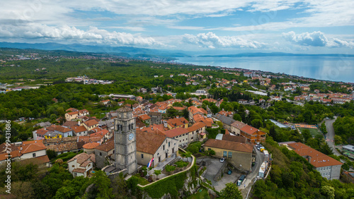 © Viktor, Obraz premium Kastav, a charming town perched on a hill overlooking the Adriatic Sea near Opatija, Croatia, offers a picturesque setting steeped in history and natural beauty captured by drone