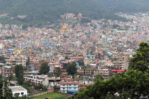© leodaphne, Naklejka premium Kathmandu city, seen from the Swayambhunath Stupa on the hill