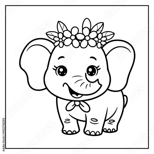 © ImamMahedi, Fototapeta premium Kawaii Animals Bold and Easy Coloring Book for Kids and Adults