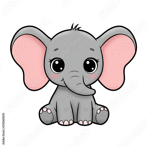 Naklejka premium Kawaii Baby Elephant with Big Eyes and Oversized Ears