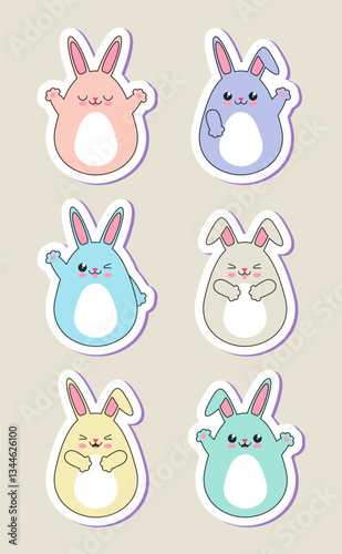 Fototapeta premium Kawaii bunnies in egg shape - set of stickers with cute animals