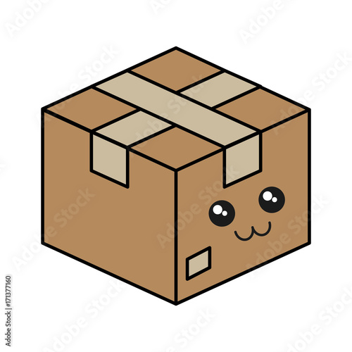 © djvstock, Obraz premium kawaii carton box icon over white background colorful design vector illustration