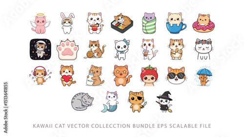 © rameneater, Fototapeta premium Kawaii cat mascot vector illustration cute chibi animal character