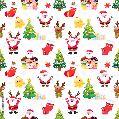 © PREEYAPHAT, Naklejka premium Kawaii Christmas pattern set