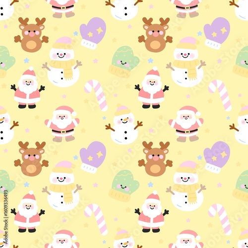 Obraz premium Kawaii Christmas seamless pattern