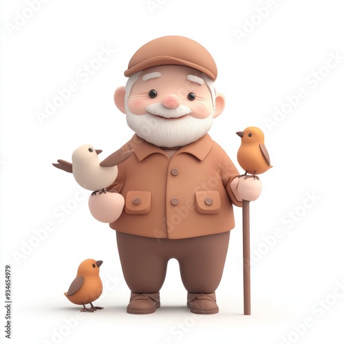 Naklejka premium Kawaii Elderly Man Feeding Birds - 3D Clay Icon in Blender 6