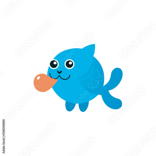 © subrata, Obraz premium -kawaii-fish-blowing-bubbles--vector-flat-colour-c.eps